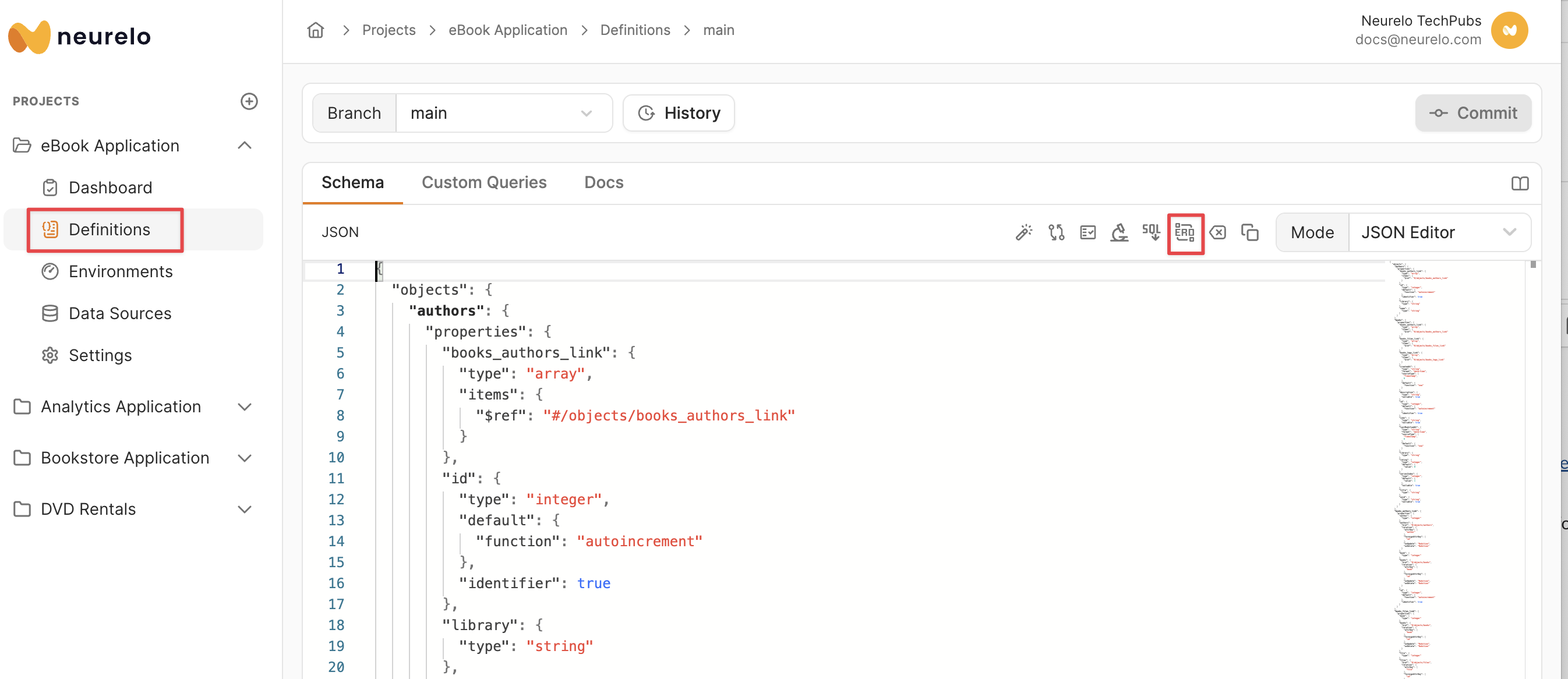 * This will display the Schema in either JSON, YAML or the Schema Builder view based on your last selectiom